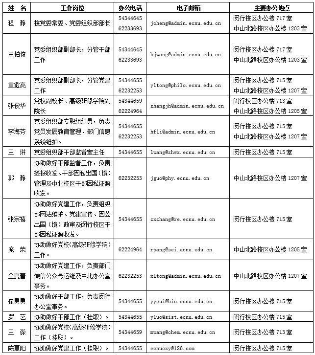 党委组织部、党校(高级研修学院)部门人员岗位分工